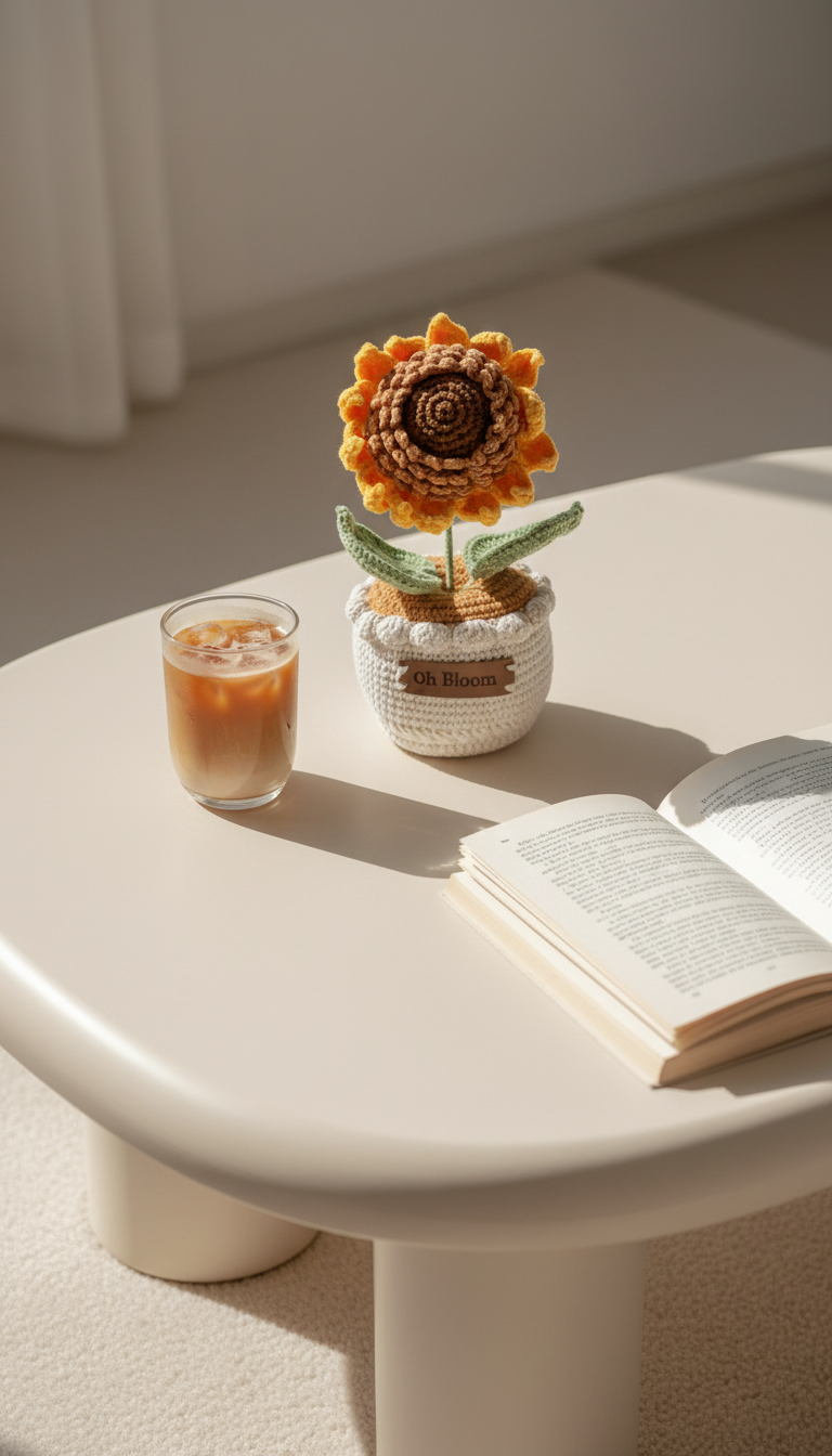 Brighten your room with our handmade crochet sunflower pot! These cheerful yellow flowers never wilt and always make you smile. Just like real sunflowers that turn toward the sun, this decoration reminds you to stay positive and look for good things every day.