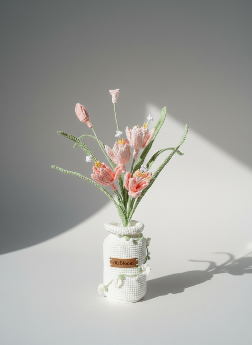 Bring magic to your room with our handmade crochet fairy lily! These delicate pink flowers look like they came from a fairy garden. Real fairy lilies bloom after rain, bringing new life and wonder. This enchanting decoration reminds you that beautiful things can happen when you least expect them.